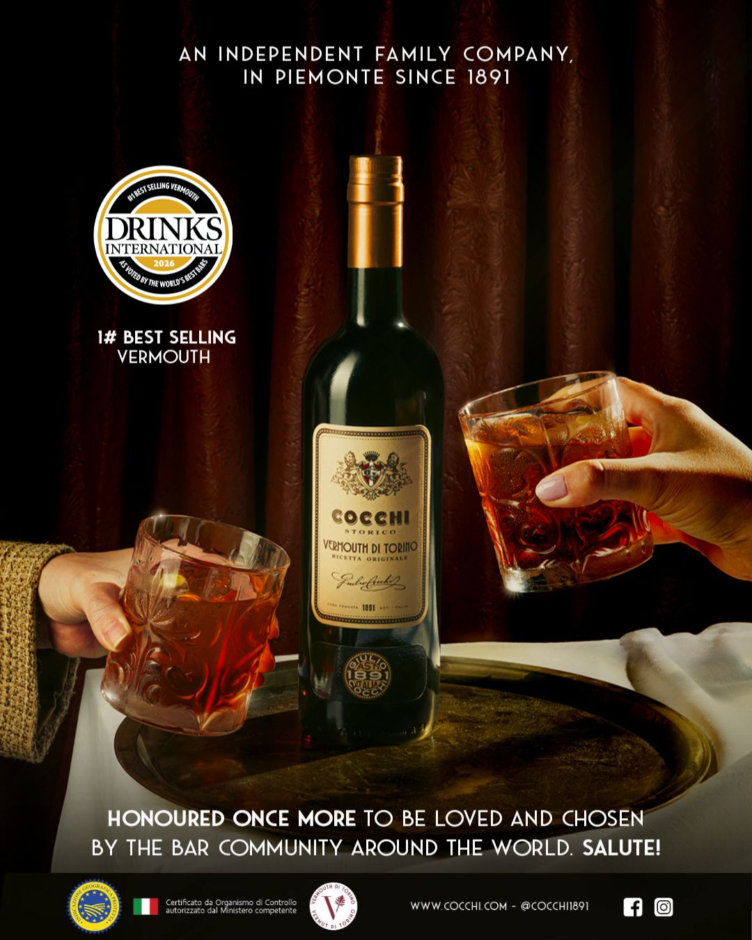 Cocchi、Drinks International 2026 世界No.1 ベストセリング・ヴェルモットに選出 ― 創業135周年を迎える節目の年に、10年連続の快挙 ―